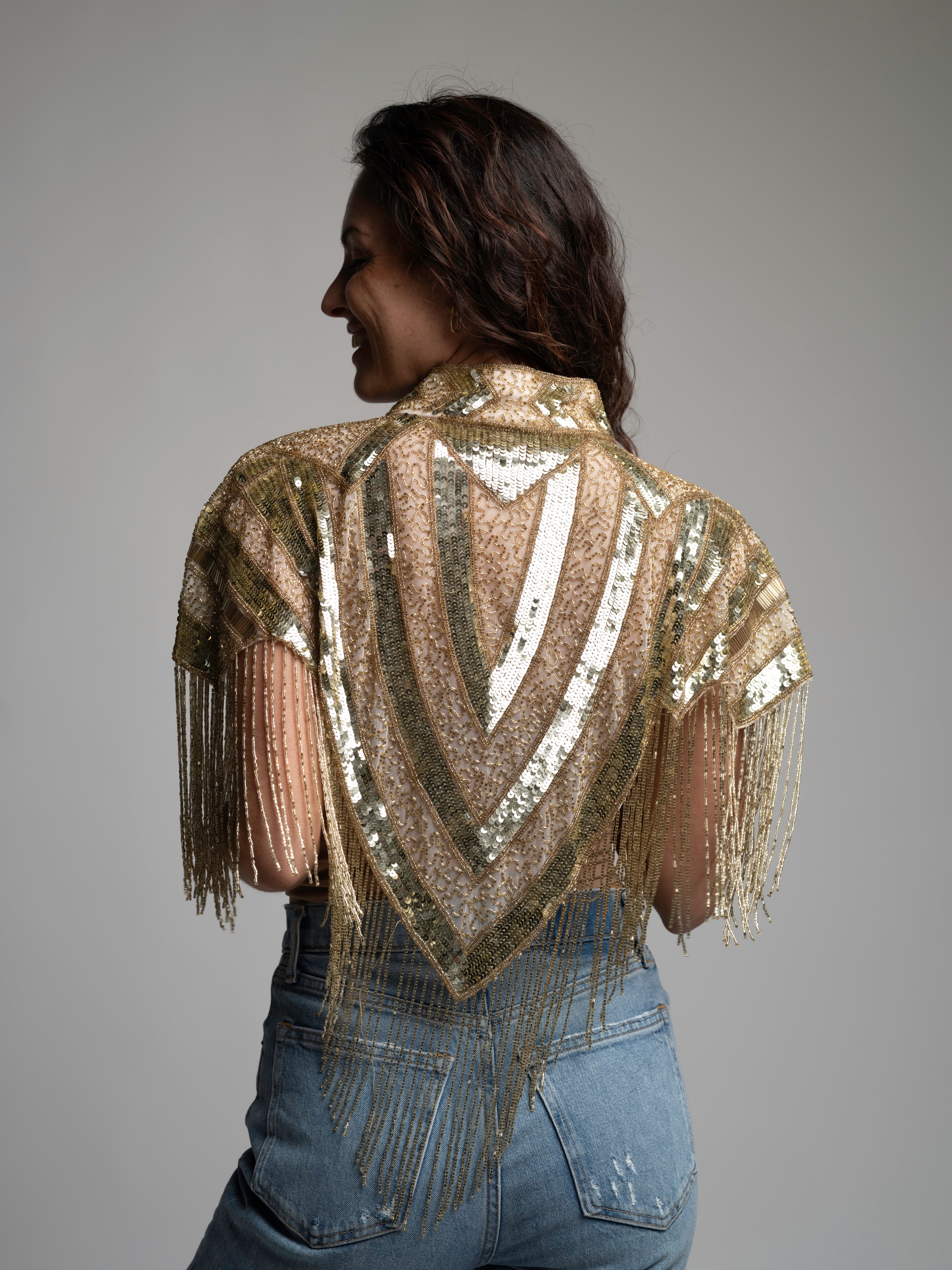 A hand-beaded statement cape that belongs in everyone's closet!